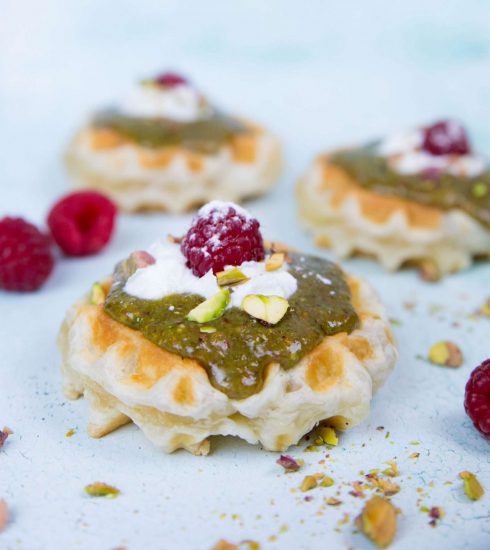 Wenn Croissant auf Waffel trifft, entstehen Croffles. Rina serviert sie mit einer feinen Pistazien-Schoko-Creme.
