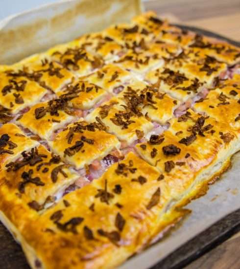Schnell gemacht und lecker für auf die Hand: unsere Blätterteig-Happen im Flammkuchenstyle. Perfekt als Partysnack.