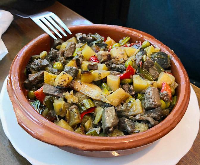 Weil die Mallorquiner das gute Fleisch, das die Tiere des heimischen Hofs hervorbrachten, lieber für gutes Geld verkauften als es in den Topf zu werden, blieben zum Kochen nur die unverkäuflichen Stücke übrig – in erster Linie Innereien. Gekocht wurde daraus das Frito Mallorquin, das neben frittierten Lamminnereien noch aus Zwiebeln, Kartoffeln, Fenchelkraut, Knoblauch, Lorbeerblättern, Salz und Pfeffer besteht. „Das Gericht gehört zu unseren ganz traditionellen Speisen – und wir lieben es“, sagt Miquel Ángel Adrover.