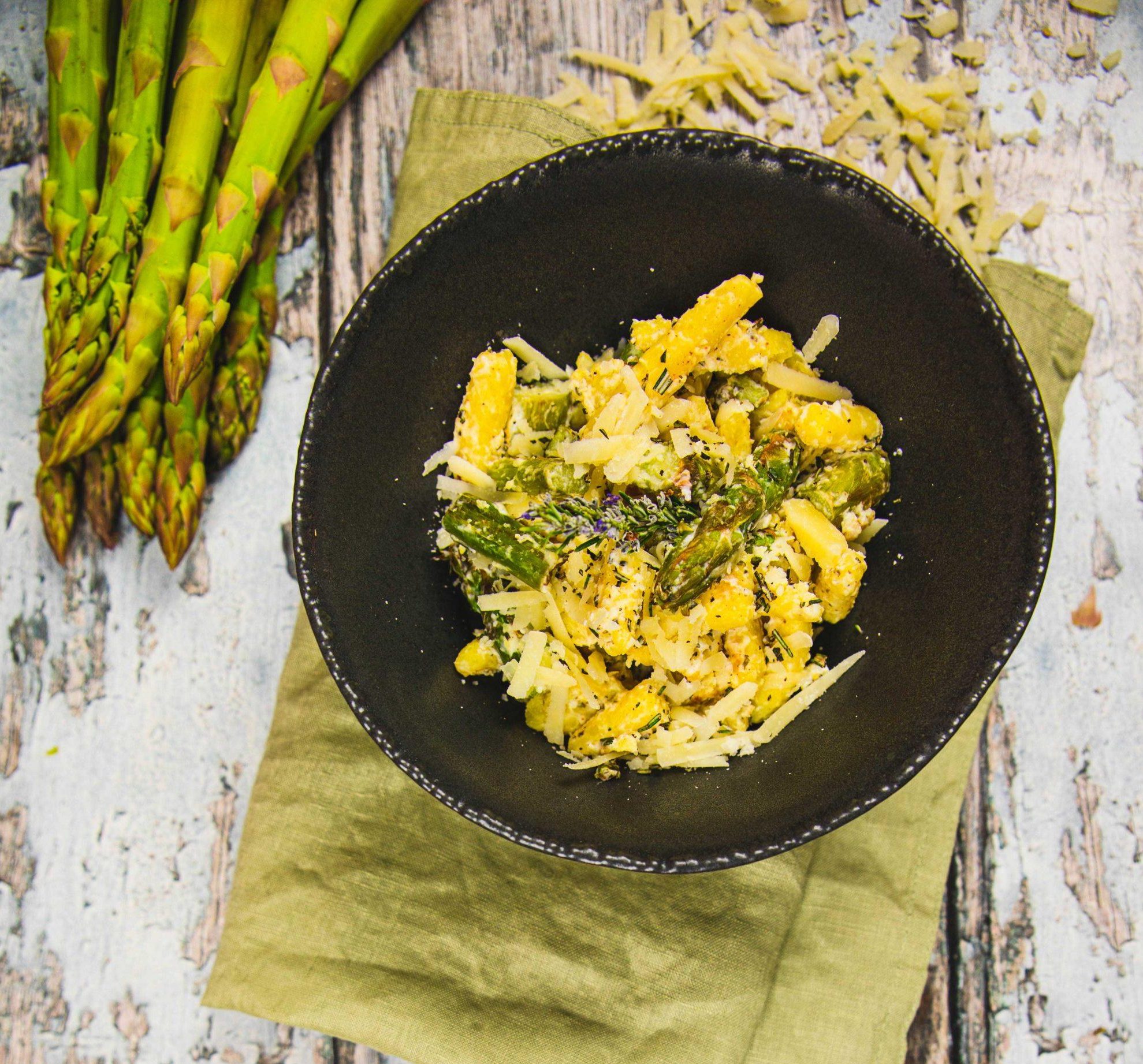 SCHUPFNUDELN MIT SPARGEL IN ZITRONEN-ROSMARIN-SAUCE