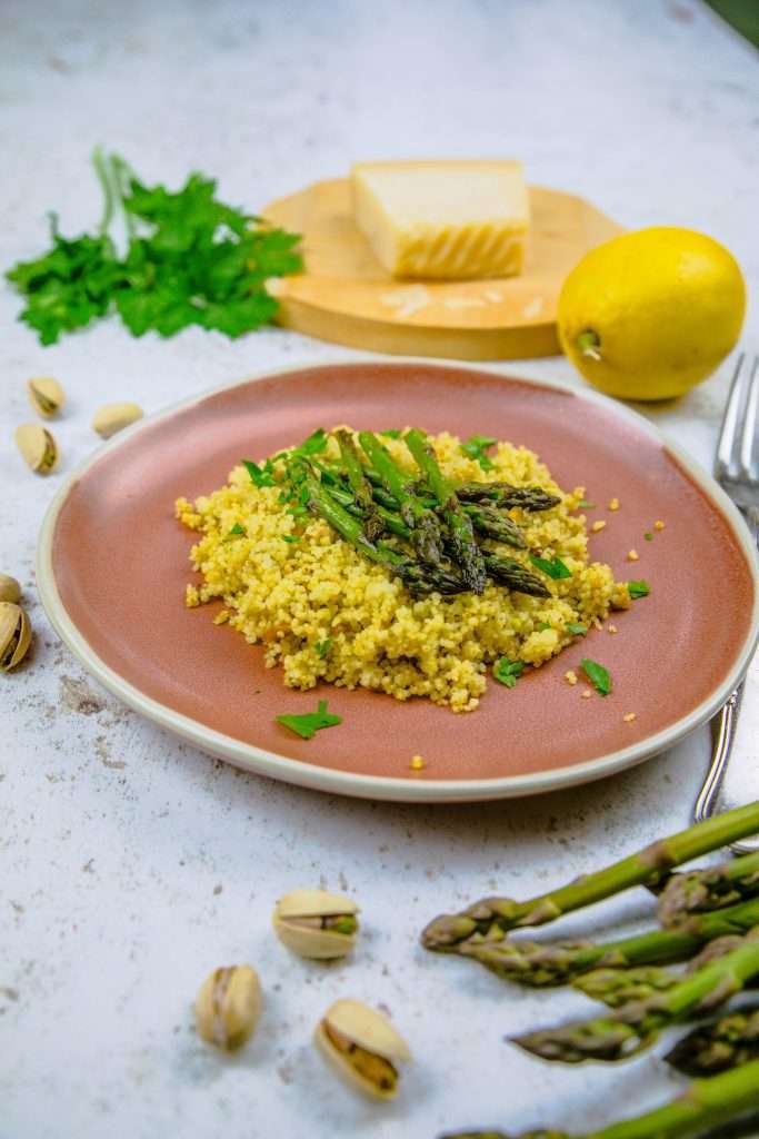 GRÜNER SPARGEL MIT PISTAZIEN-PESTO AUF COUSCOUS