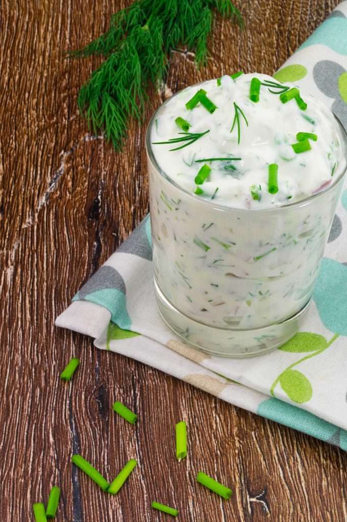 Frische Kräuter in cremigem Joghurt – eine perfekte Ergänzung zu Gemüse, Fleisch, Fisch oder Meeresfrüchten.