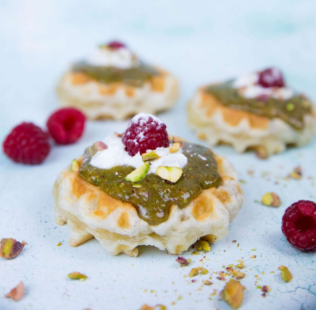 Wenn Croissant auf Waffel trifft, entstehen Croffles. Rina serviert sie mit einer feinen Pistazien-Schoko-Creme.